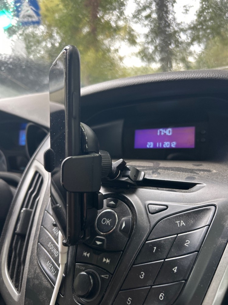 Снизу у зажима есть опоры смартфона. Изначально они задвинуты в корпус держателя. Их надо вынуть и развернуть на 90 градусов. Нижние опоры совместно с зажимом с ребристыми вставками держат смартфон надежно даже на очень неровной дороге.