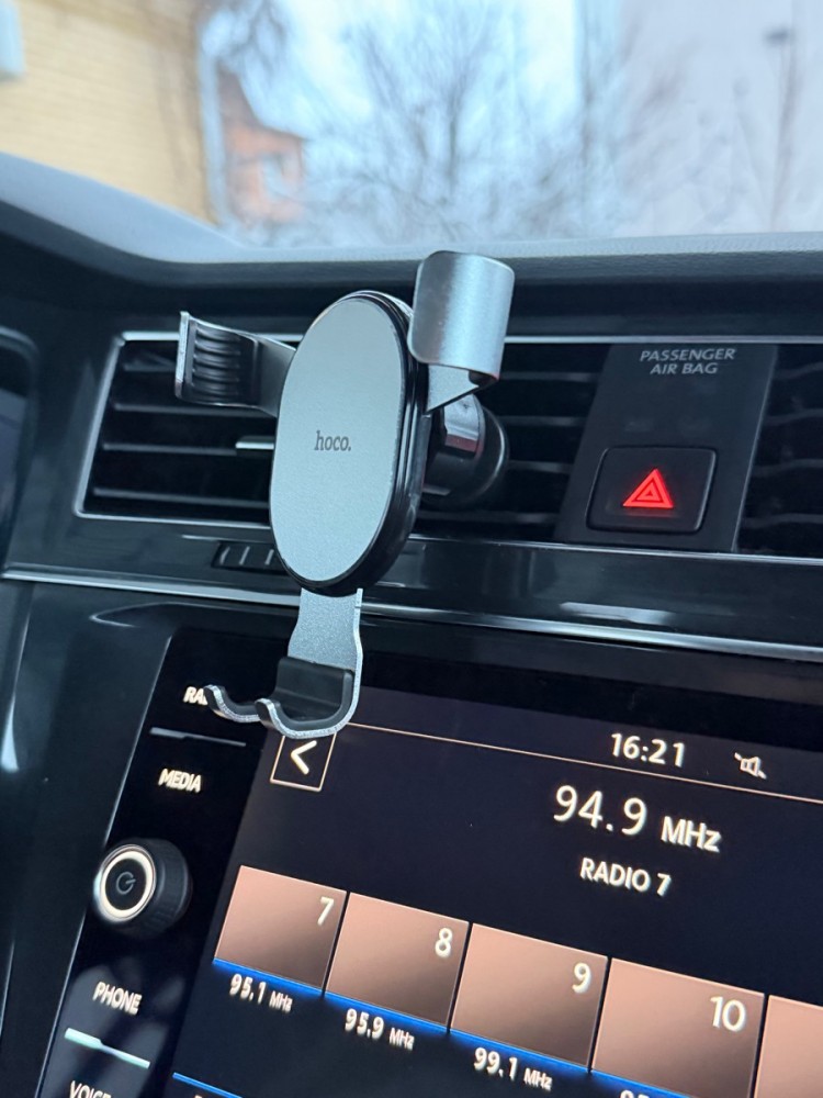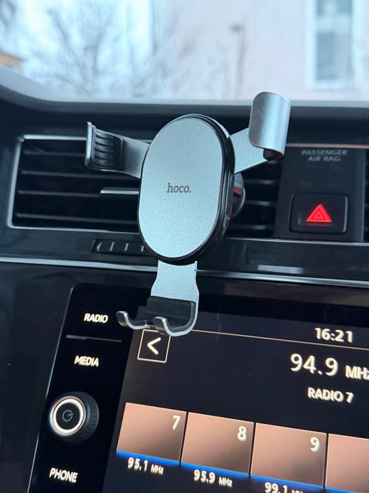 Hoco CA56 Plus Armor metal gravity - универсальный автомобильный держатель с автозахватом для смартфона. Устанавливается в вентиляционную решётку воздуховода. Подходит для iPhone 12 Pro, Samsung Galaxy S21 и других моделей