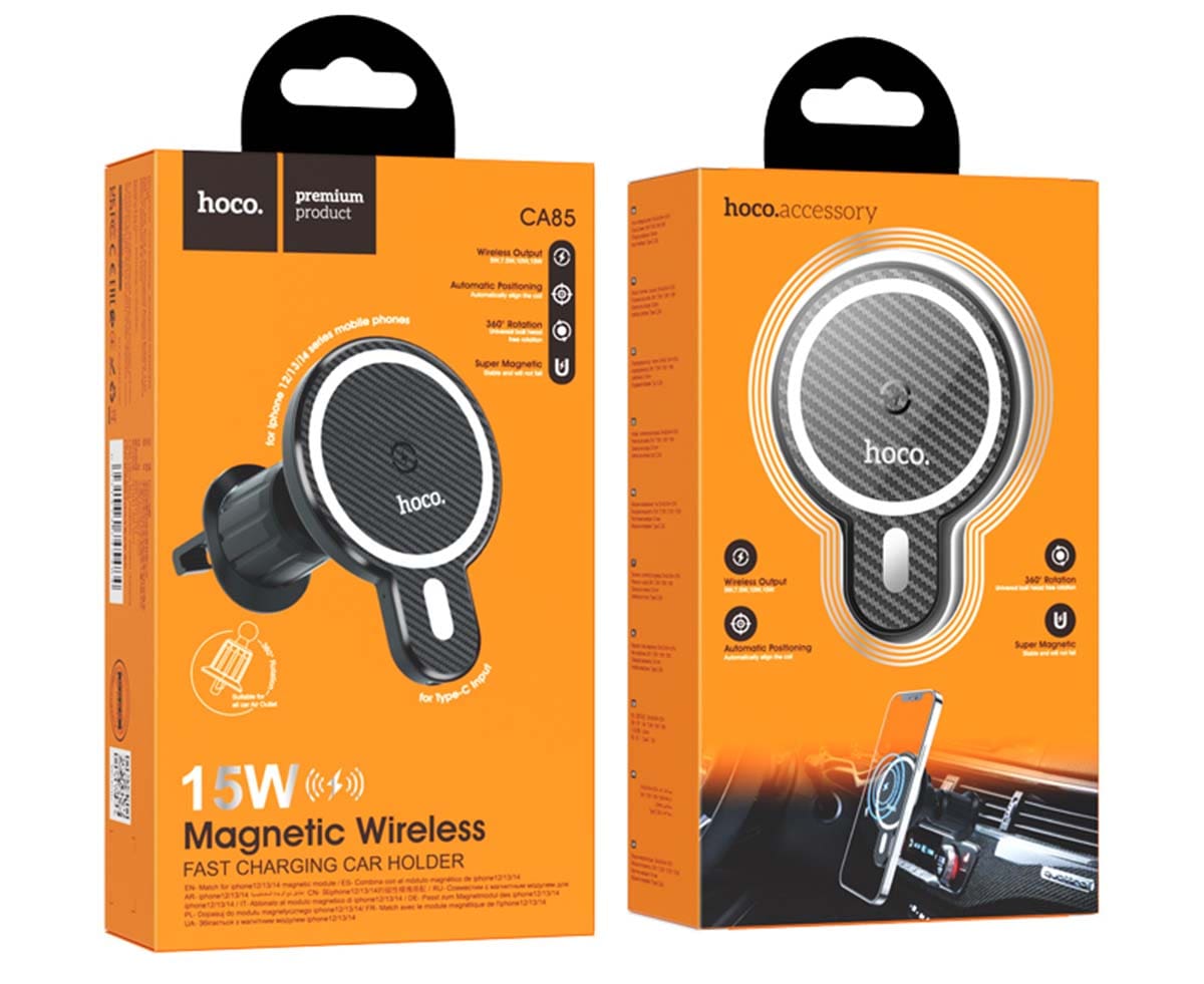 держатель с беспроводной зарядкой MagSafe Hoco CA85 Ultra-fast magnetic wireless charging car holder black
