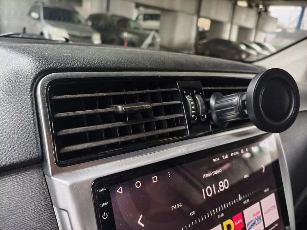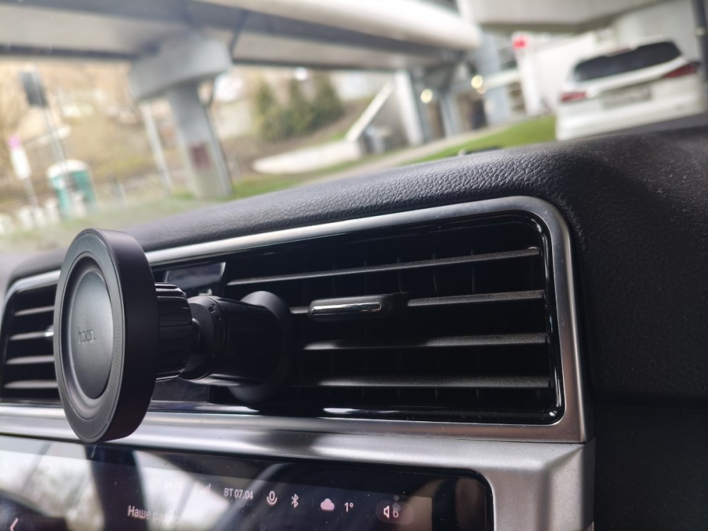 Автомобильный магнитный держатель телефона Hoco H56 из термостойкого пластика и с металлическим крюком надёжно фиксируется за пластину дефлектора. Аксессуар остаётся на месте и не теряет телефон на кочках, лежачих полицейских и поворотах