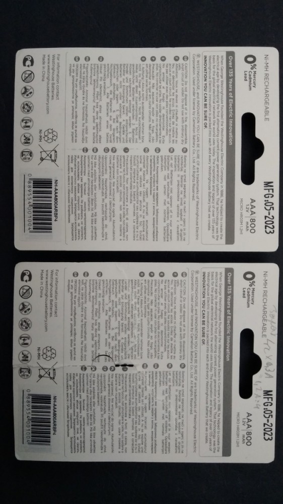 Другие перезаряжаемые батареи разряжаются, когда лежат на полке. Аккумуляторы ААА Westinghouse 800 mAh держат заряд после года хранения с момента производства в пределах - 80%-90%. После пяти лет хранения сохраняется 70% первоначального заряда при условии, что соблюдаются правила хранения