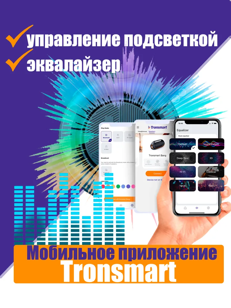Пользователи могут настраивать предустановки эквалайзера и динамическую подсветку в приложении Tronsmart в соответствии со своим настроением или музыкальным жанром