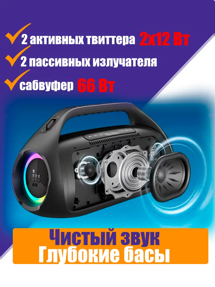Благодаря интеллектуальной технологии разделения частот, точно настроенному объёму звуковой камеры и двухдиафрагменной структуре для усиления басов, беспроводная колонка Tronsmart Bang 2 улучшает низкочастотное звучание и чёткость голоса, предлагая впечатляющую динамику и захватывающий стереозвук